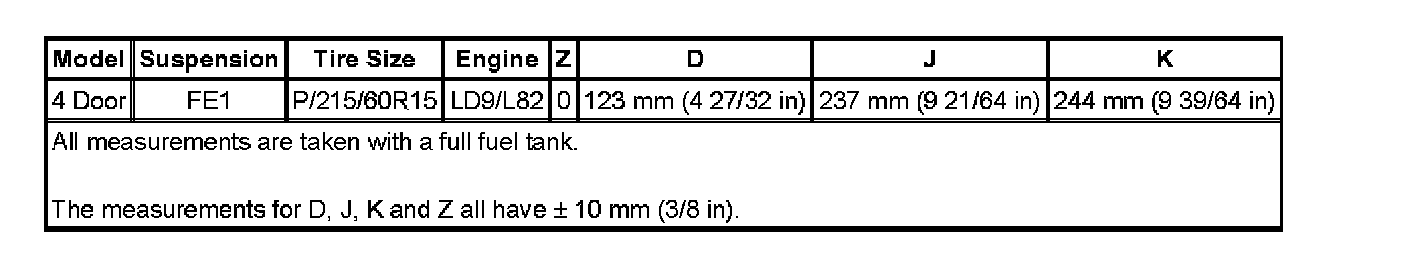 Ride Height Specifications:
