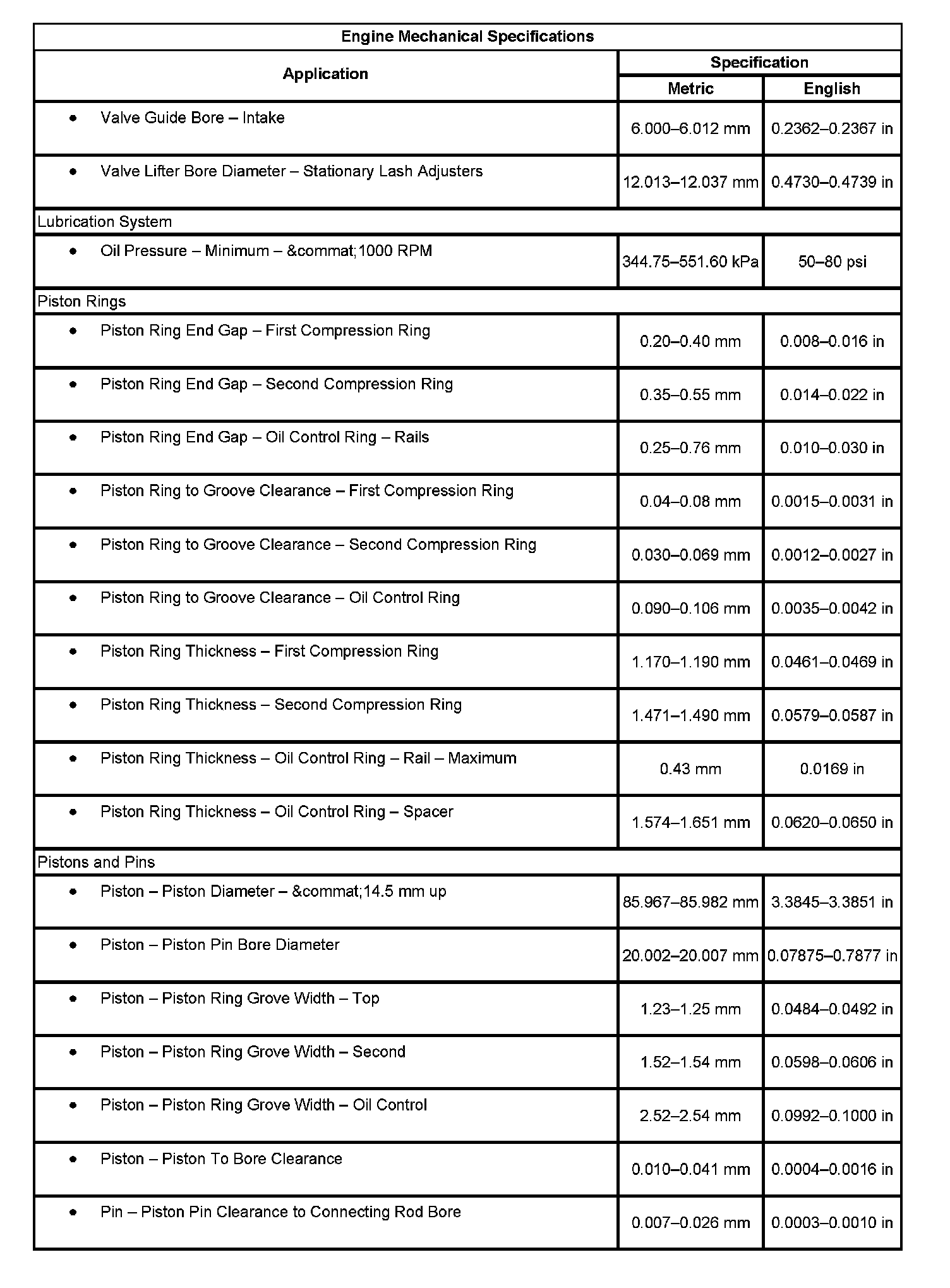 Engine Mechanical Specifications, Part 3: