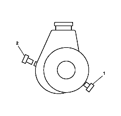 2. Install the plugs (1,2) supplied with the J 43485 into the pressure and return port.