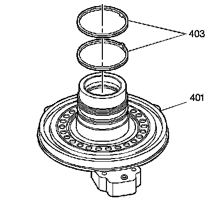 2. Assemble the 2nd clutch piston and seal assembly (404) into the driven sprocket support (401).