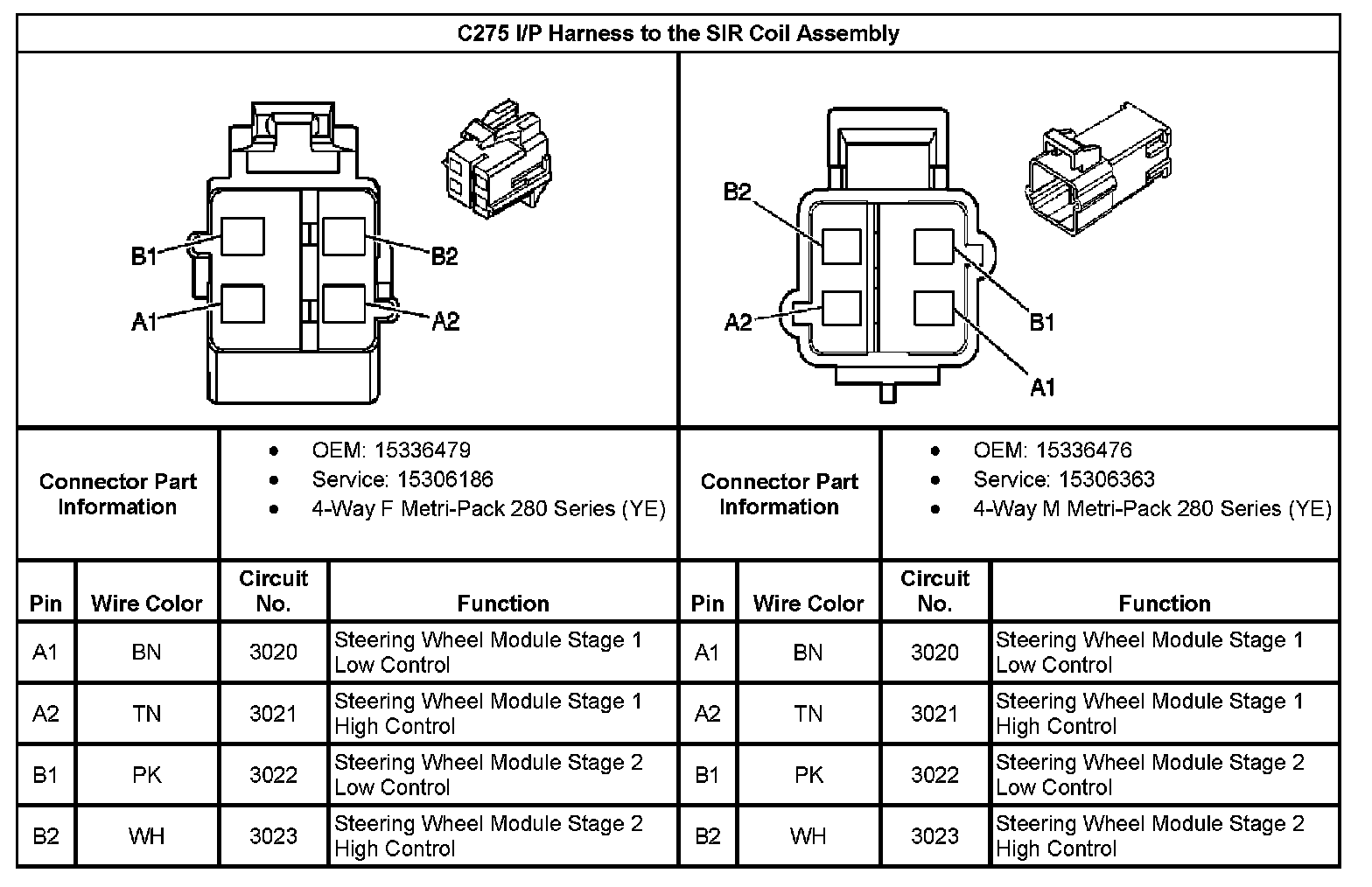 C275 I/P Harness to the SIR Coil Assembly: