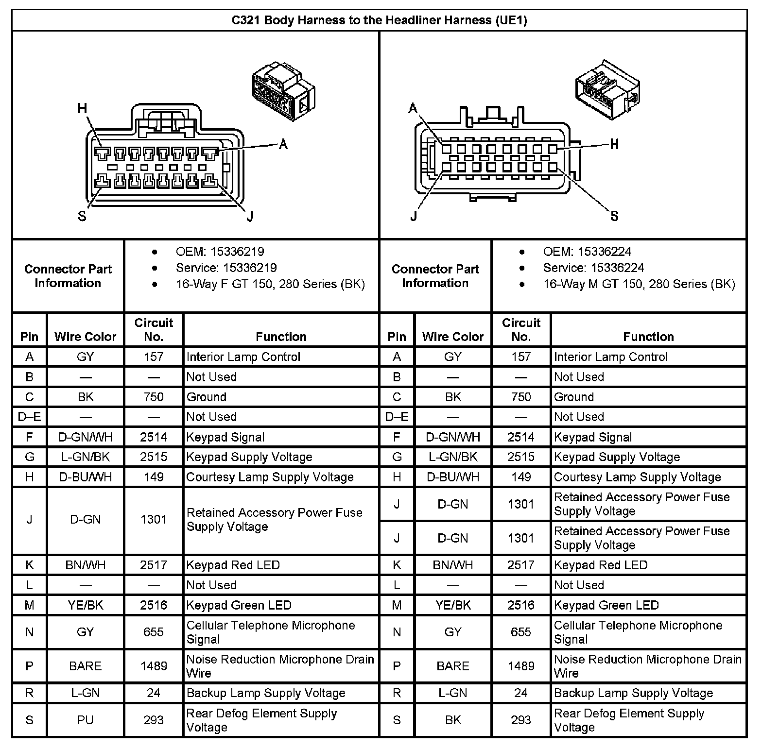 C321 Body Harness to the Headliner Harness (With RPO Code UE1):
