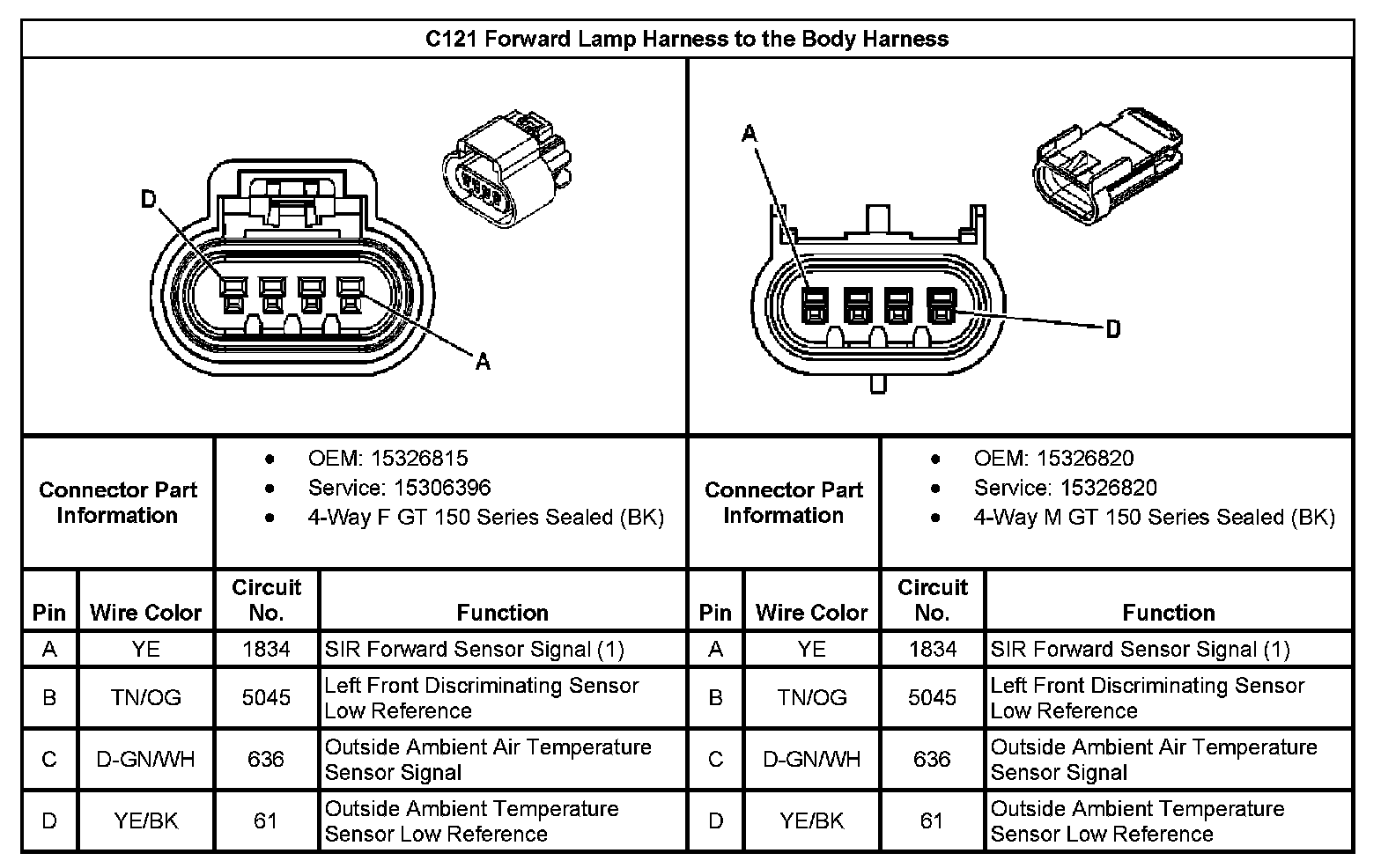C121 Forward Lamp Harness to the Body Harness: