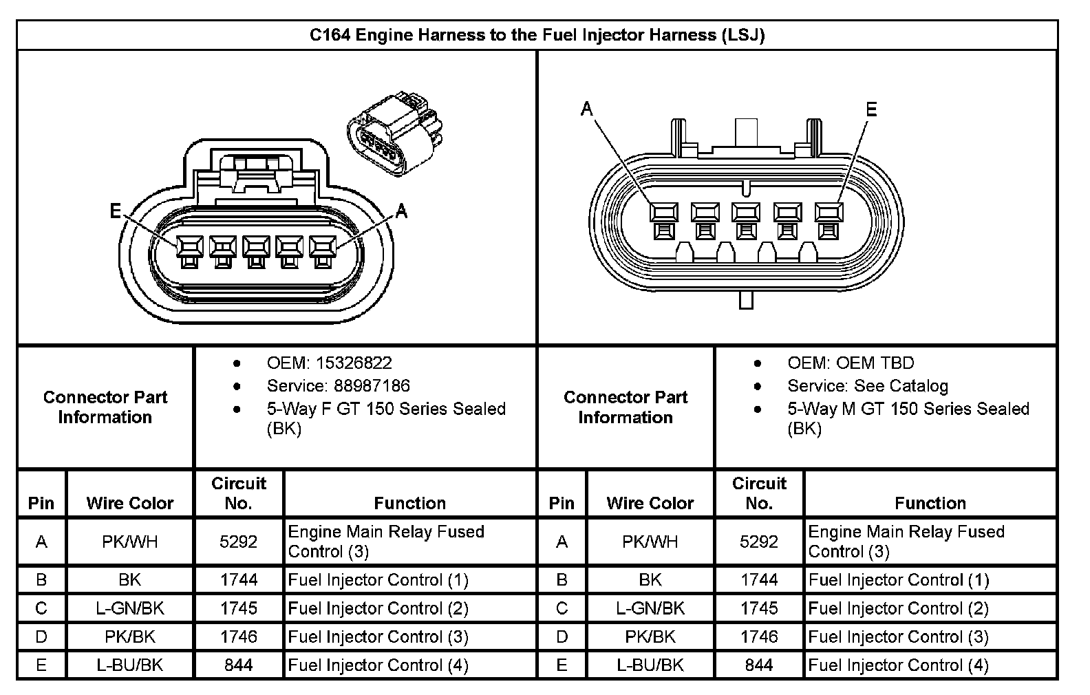C164 Engine Harness to the Fuel Injector Harness: