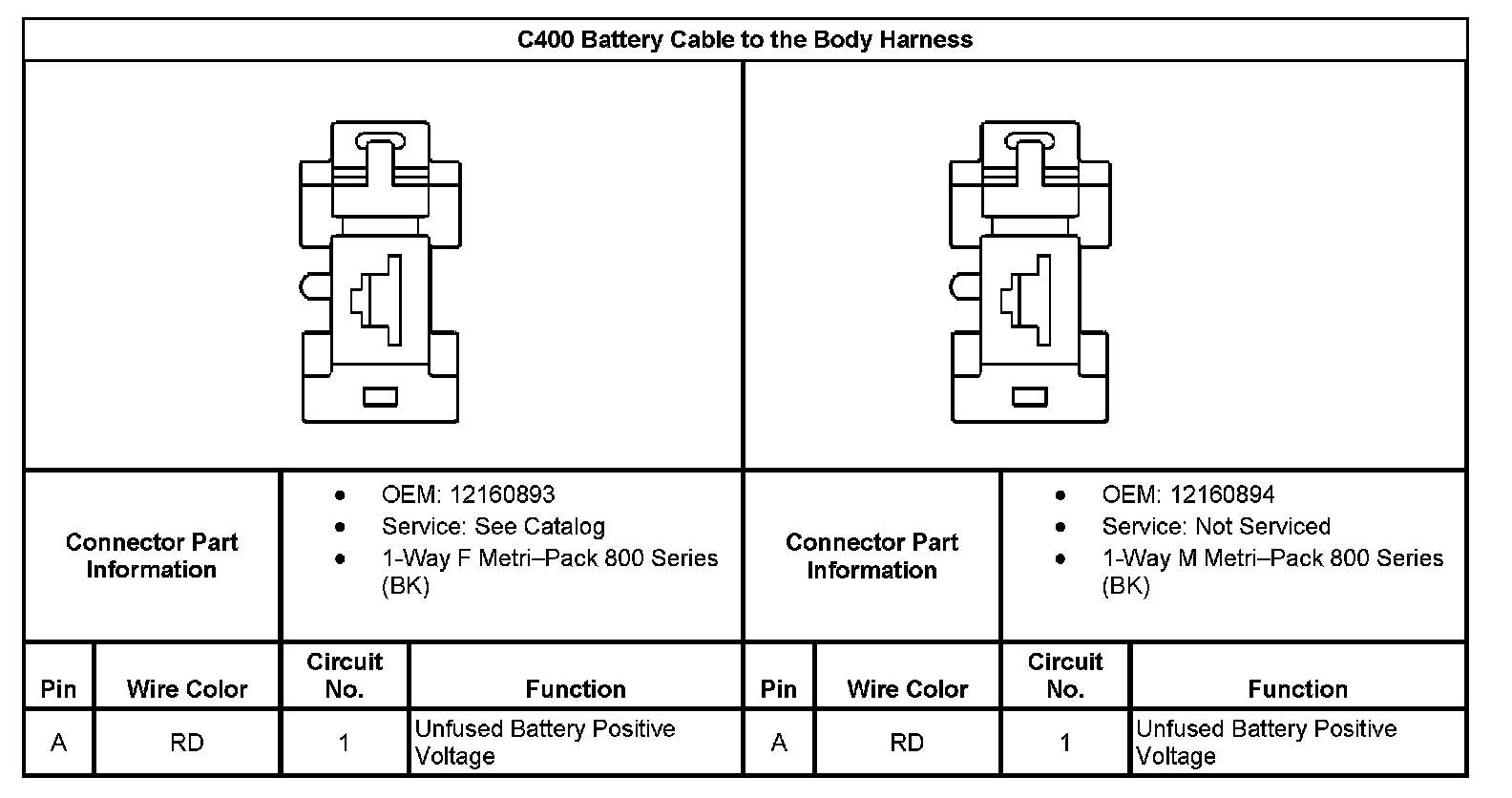 C400 Battery Cable to the Body Harness: