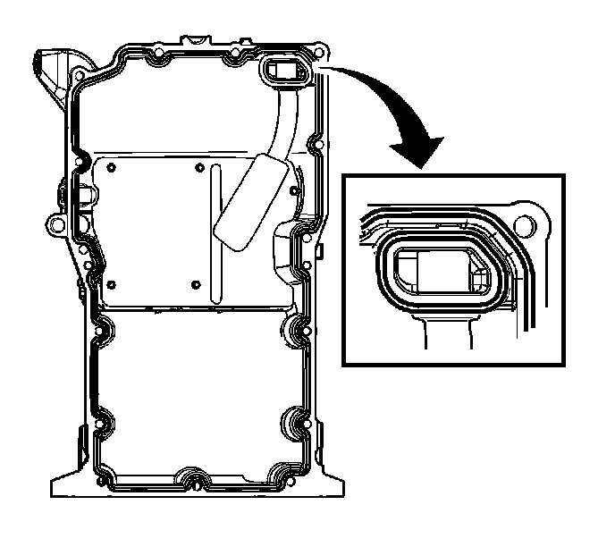2. Apply a 2 mm bead of RTV, Saturn P/N 21019581, around the perimeter of the oil pan and the oil suction port opening. Do not over apply the RTV. More than a 2 mm bead is not required.
