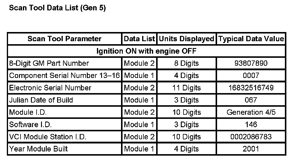 Scan Tool Data List (Gen 5):