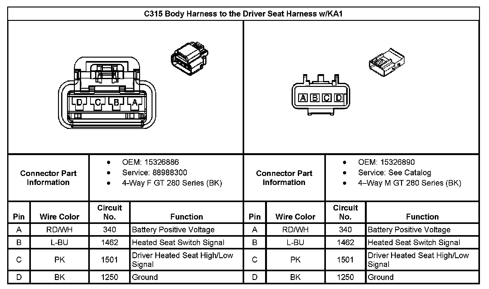 C314 Body Harness to the Driver Seat Harness (With RPO Code KA1):