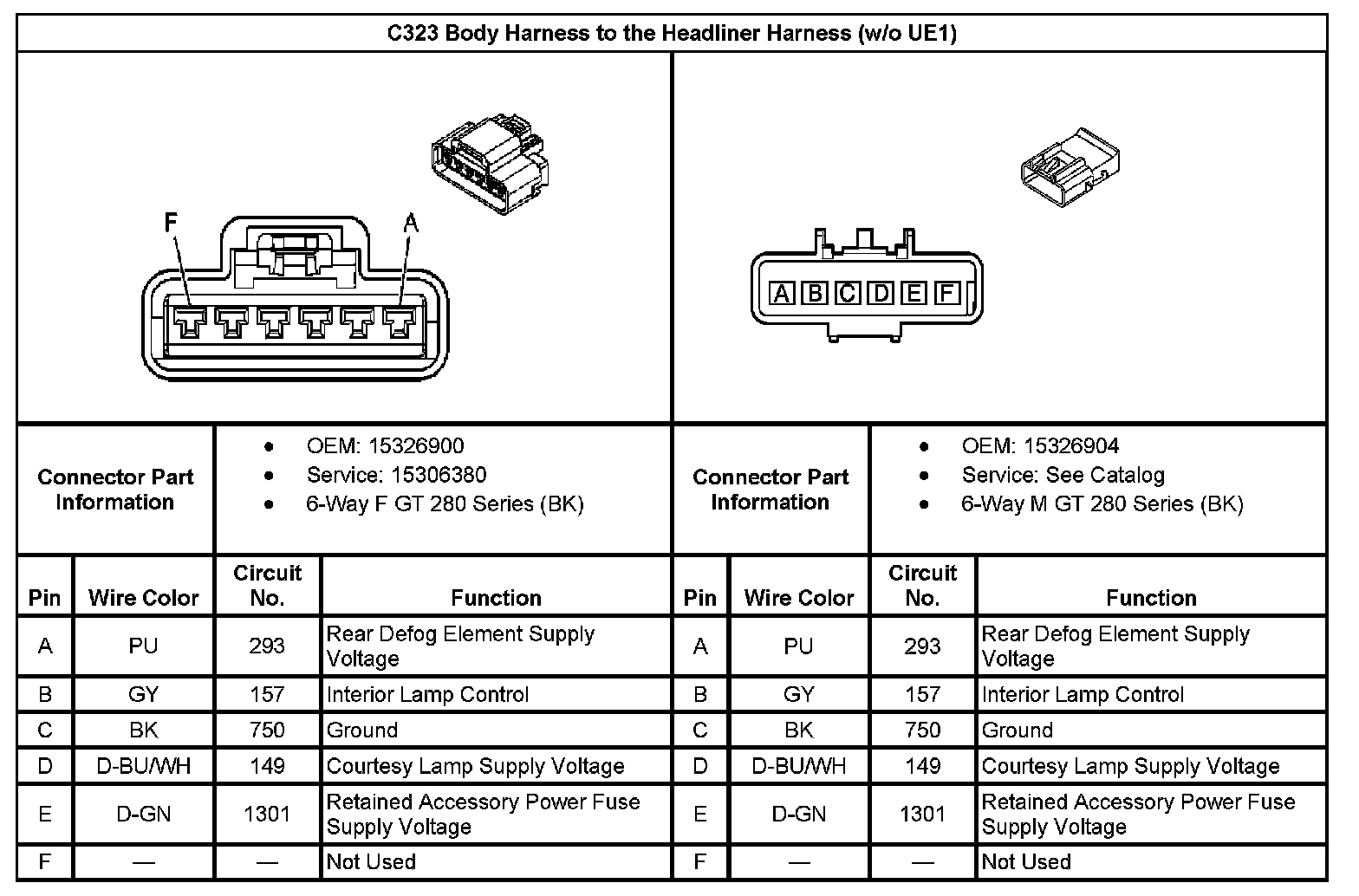 C323 Body Harness to the Headliner Harness (Without RPO Code UE1):
