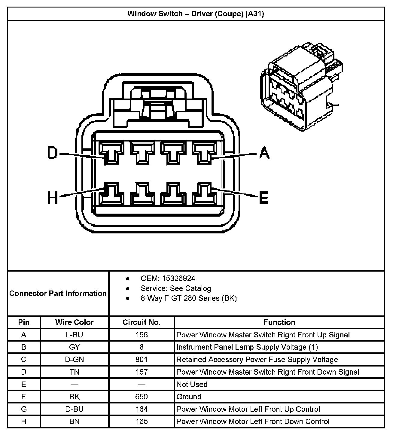 Window Switch - Driver (Coupe) (With RPO Code A31):