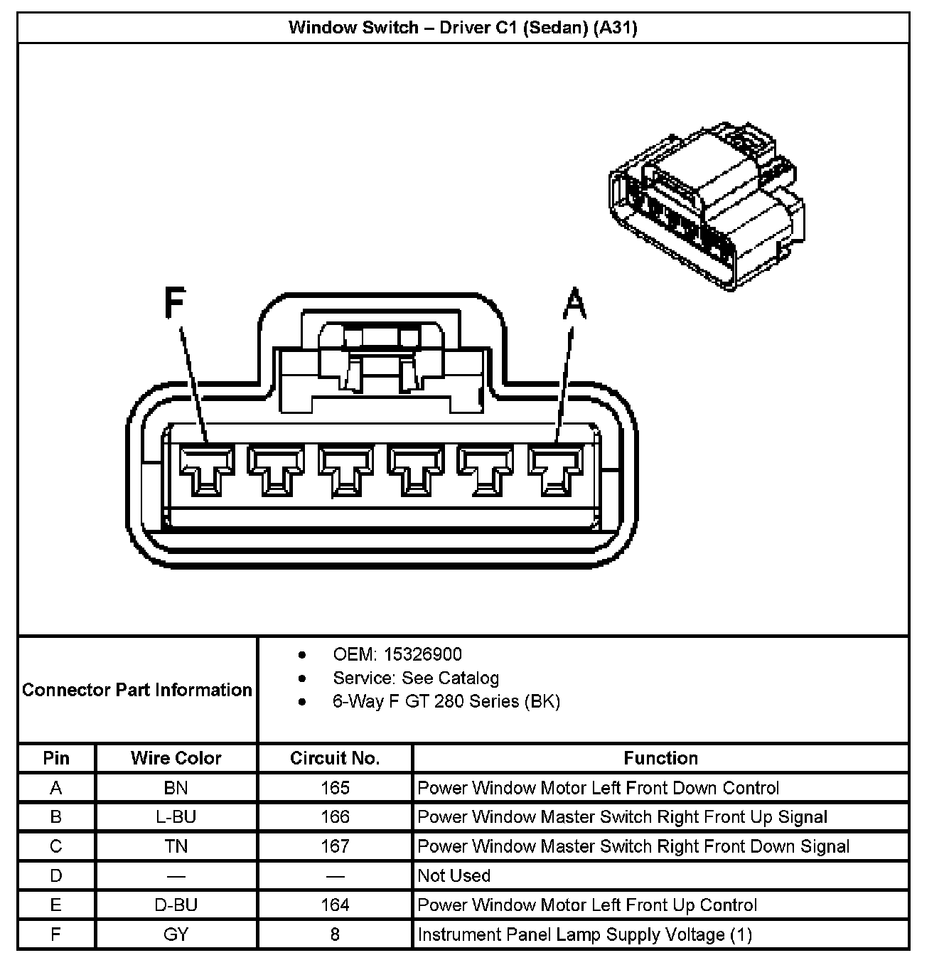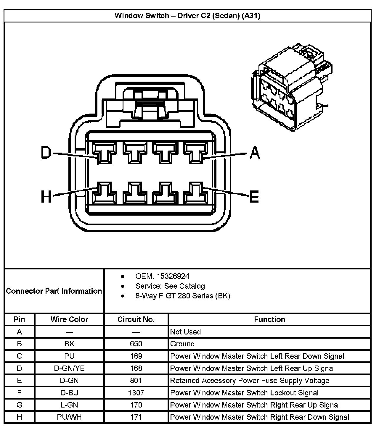Window Switch - Driver C2 (Sedan) (With RPO Code A31):