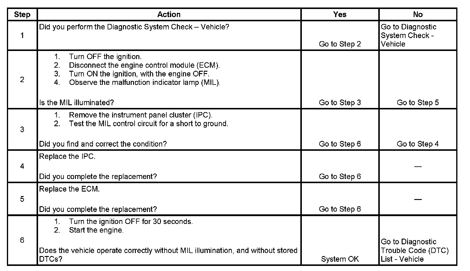 2. This step determines if the condition is with the MIL control circuit or the ECM.