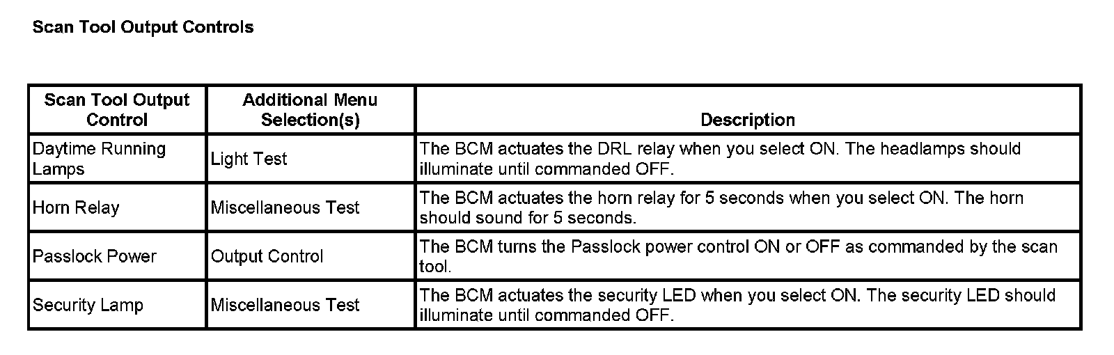 Scan Tool Output Controls: