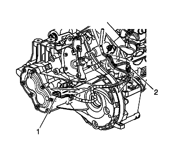 2. Disconnect the vehicle speed sensor (VSS) electrical connector (2).
