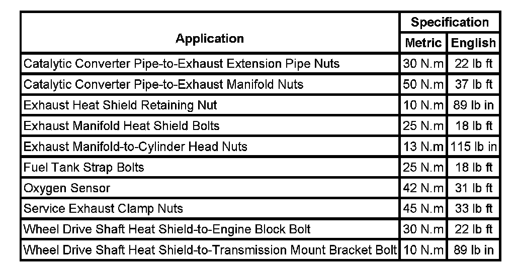 Fastener Tightening Specifications: