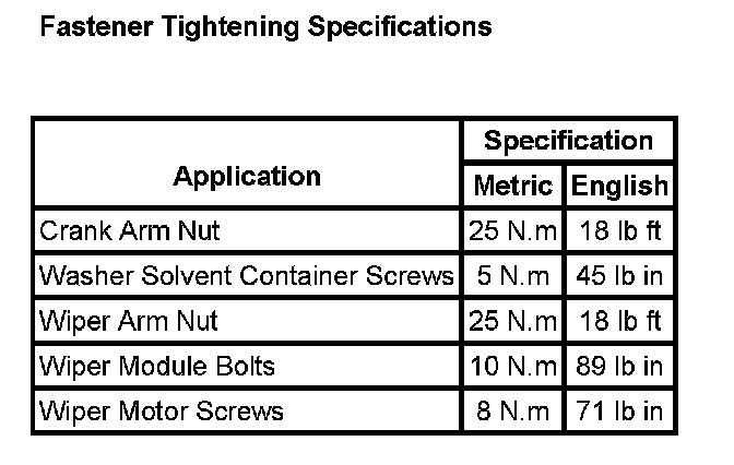 Wiper and Washer Systems: Specifications