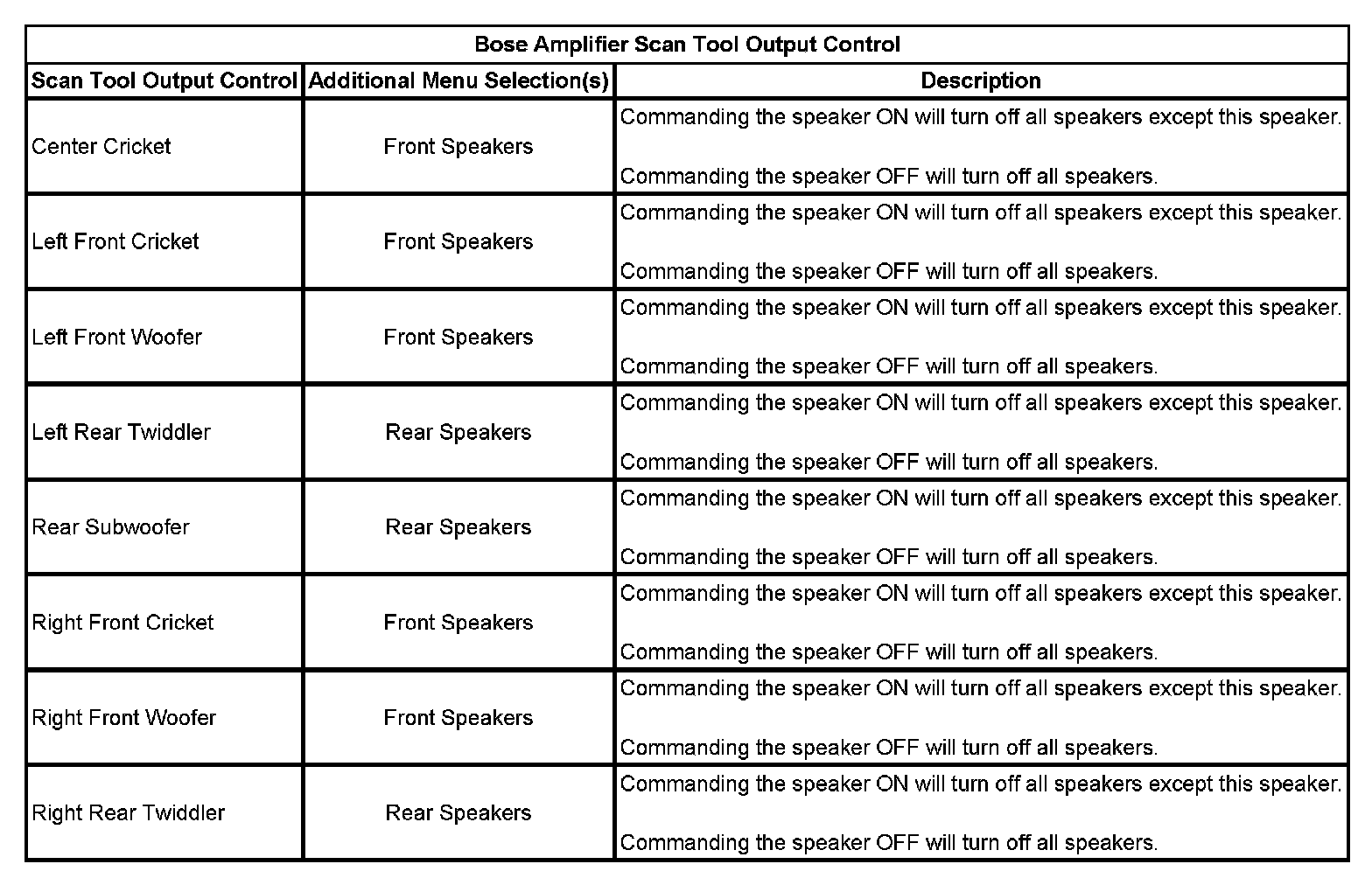 Bose Amplifier Scan Tool Output Control: