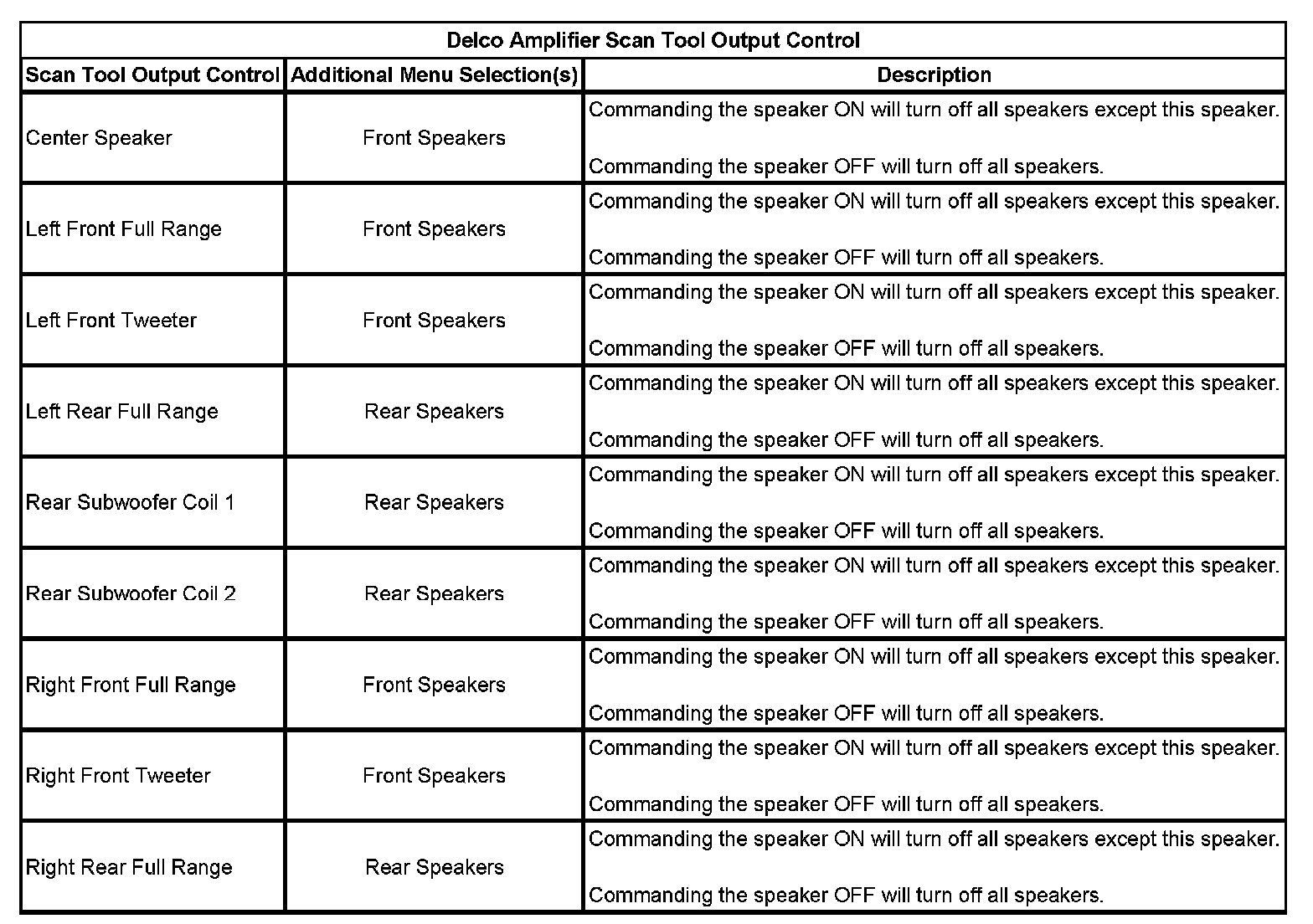 Delco Amplifier Scan Tool Output Control: