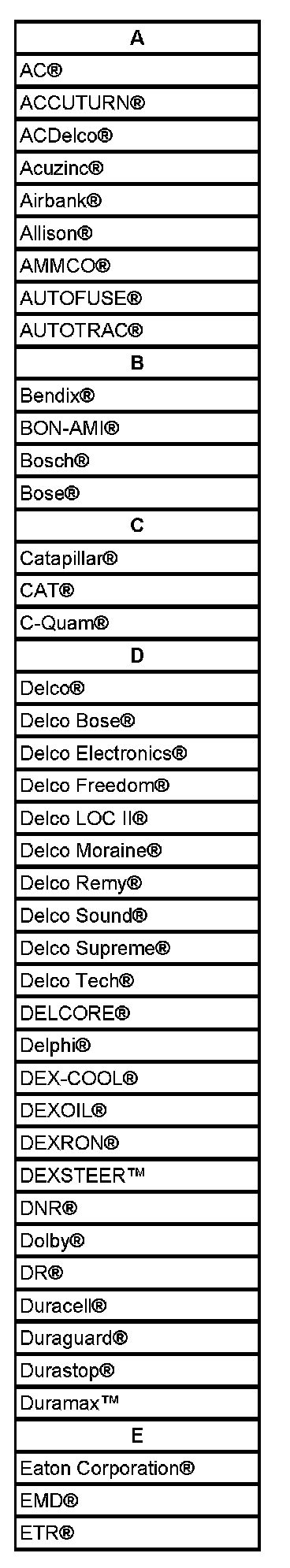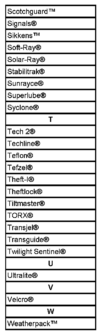 Listed are Registered Trademarks ((R)) or Non-Registered Trademarks ((TM)) which may appear in this service data.