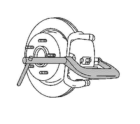 11. Notice: Support the brake caliper with heavy mechanic's wire, or equivalent, whenever it is separated from its mount and the hydraulic flexible brake hose is still connected. Failure to support the caliper in this manner will cause the flexible brake hose to bear the weight of the caliper, which may cause damage to the brake hose and in turn may cause a brake fluid leak.