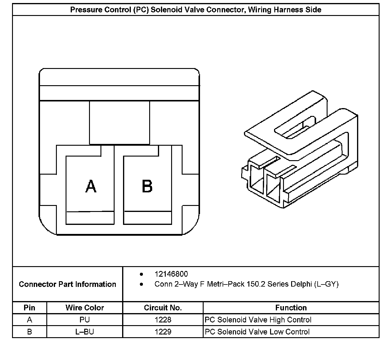 Pressure Control (PC) Solenoid Valve Connector, Wiring Harness Side: