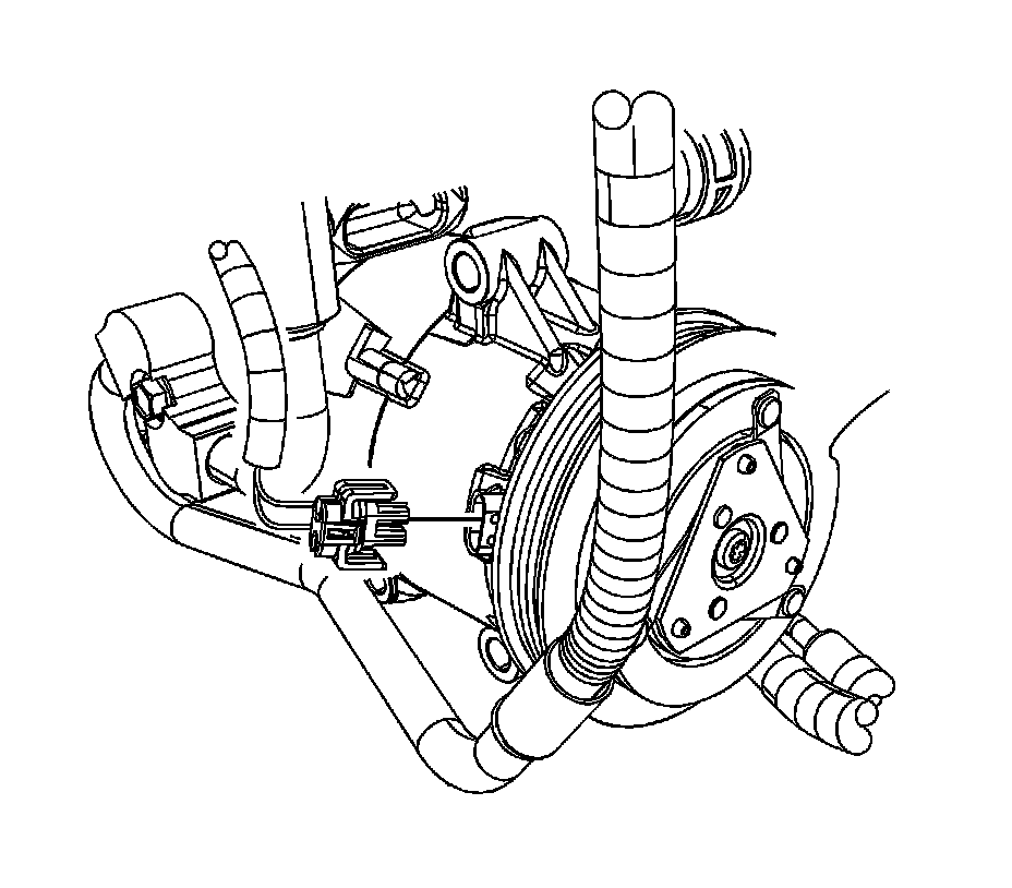 3. Remove the A/C compressor hose assembly from the A/C compressor. Refer to Air Conditioning Compressor Hose Replacement, Compressor Hose Assembly