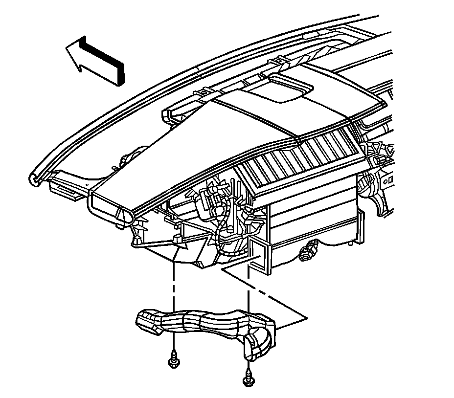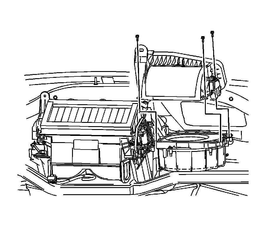 - Reposition the HVAC module rearward to access the front left-hand (LH) screw.