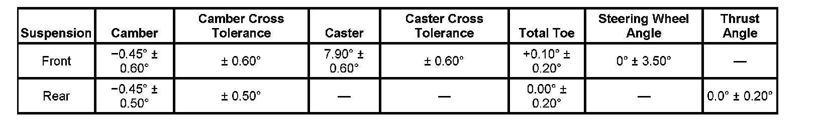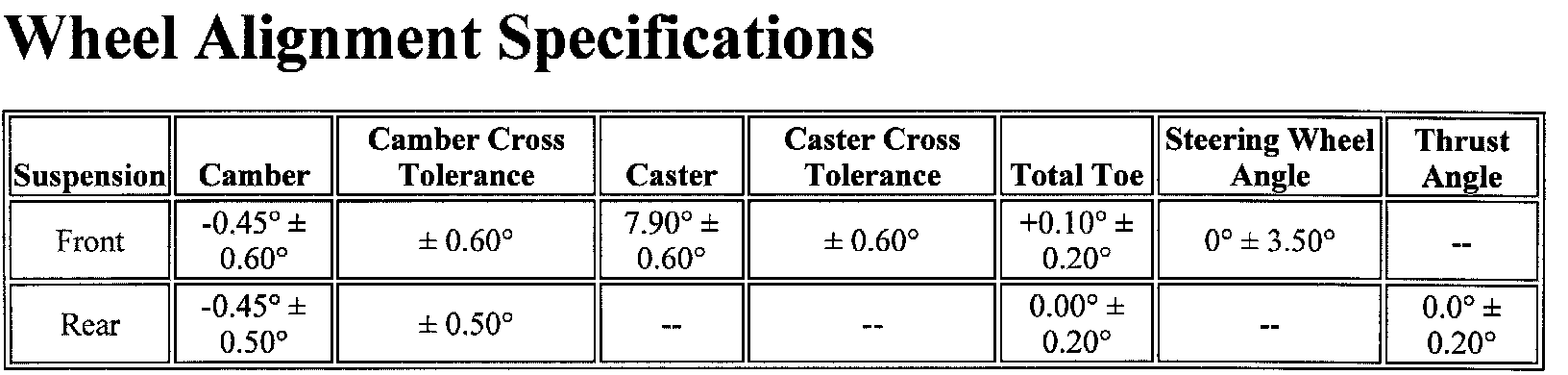 Wheel Alignment Specifications