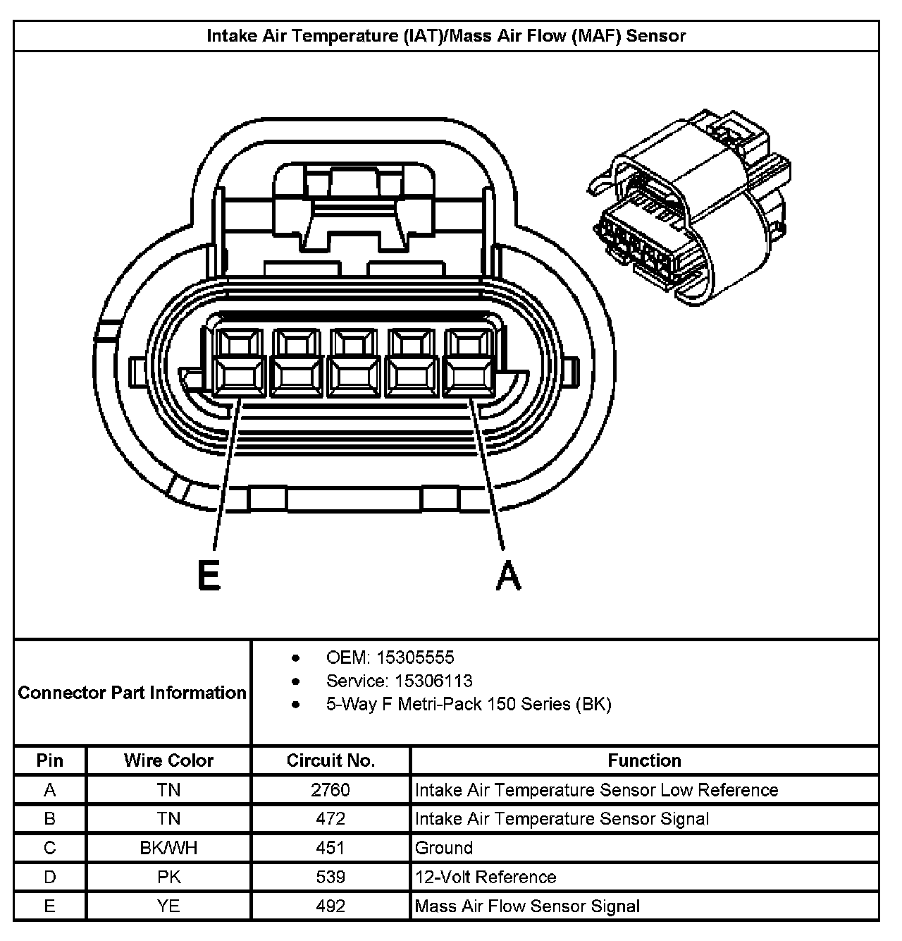 Intake Air Temperature (IAT)/Mass Air Flow (MAF) Sensor: