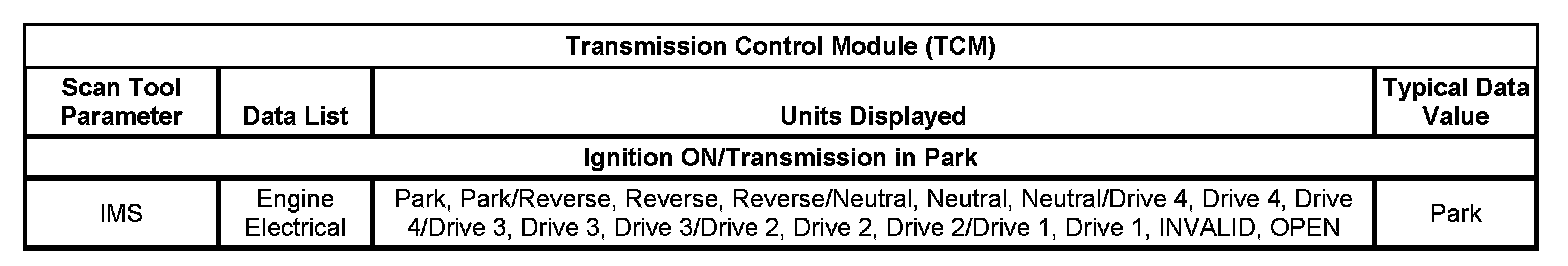 Normal Scan Tool Data Values - Transmission Control Module (TCM)