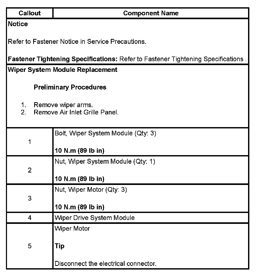 , WIPER SYSTEM MODULE REPLACEMENT