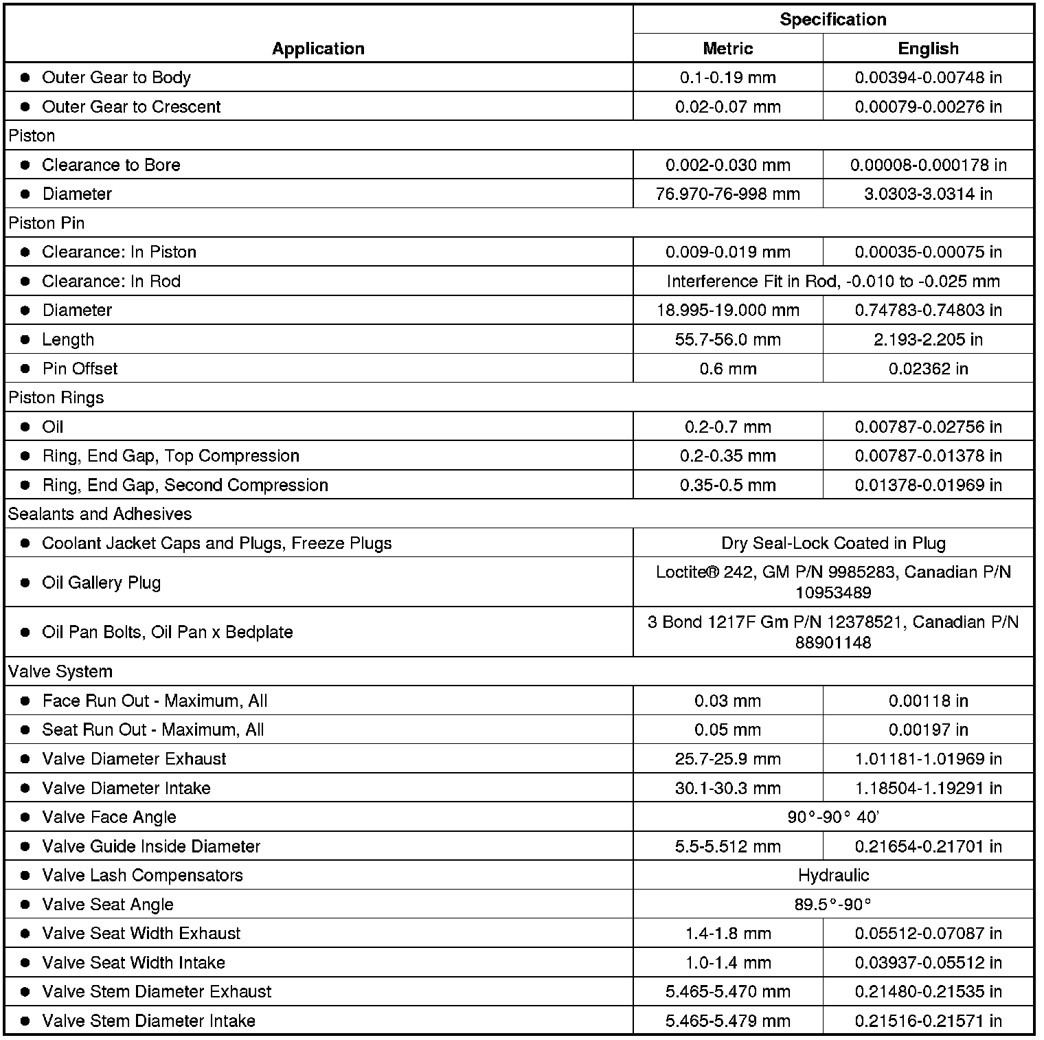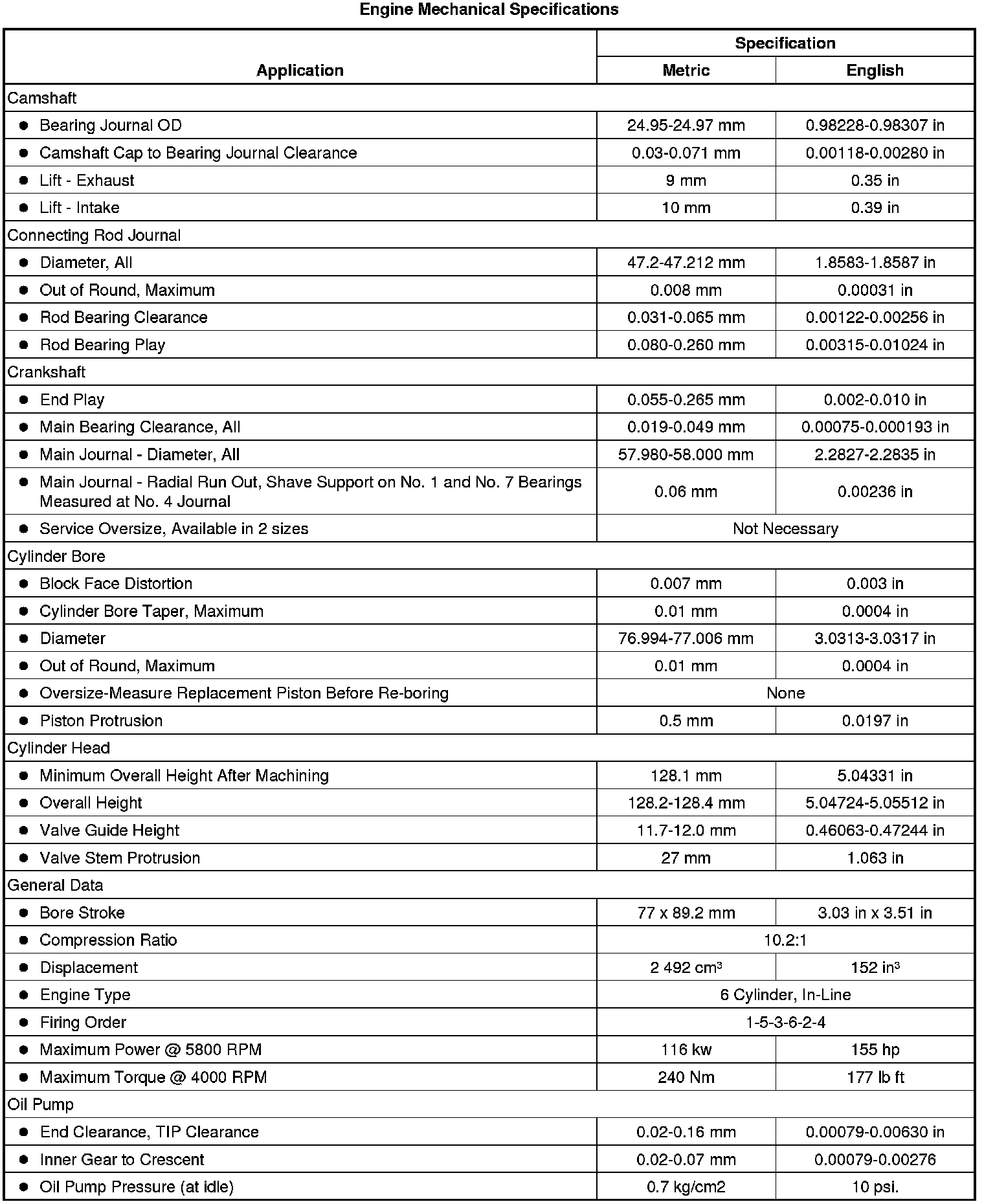 Engine Mechanical Specifications