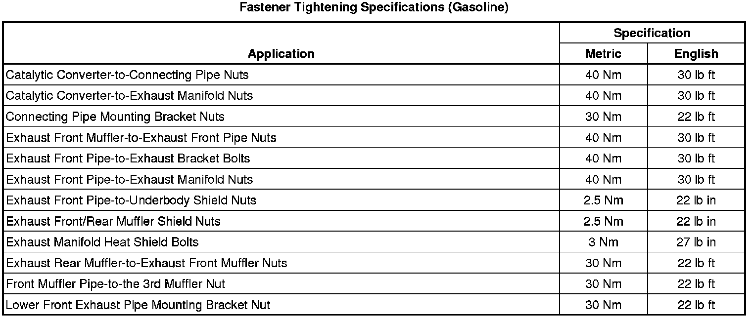 Fastener Tightening Specifications (Gasoline)