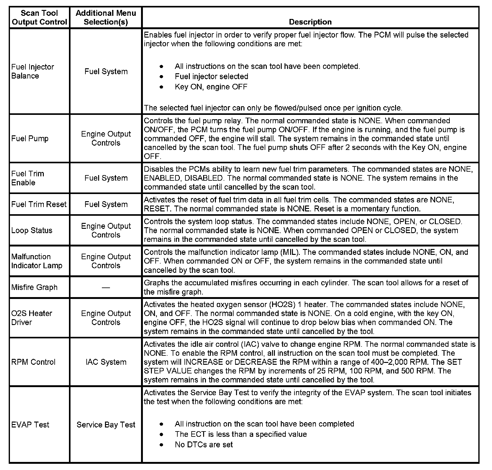Scan Tool Output Controls