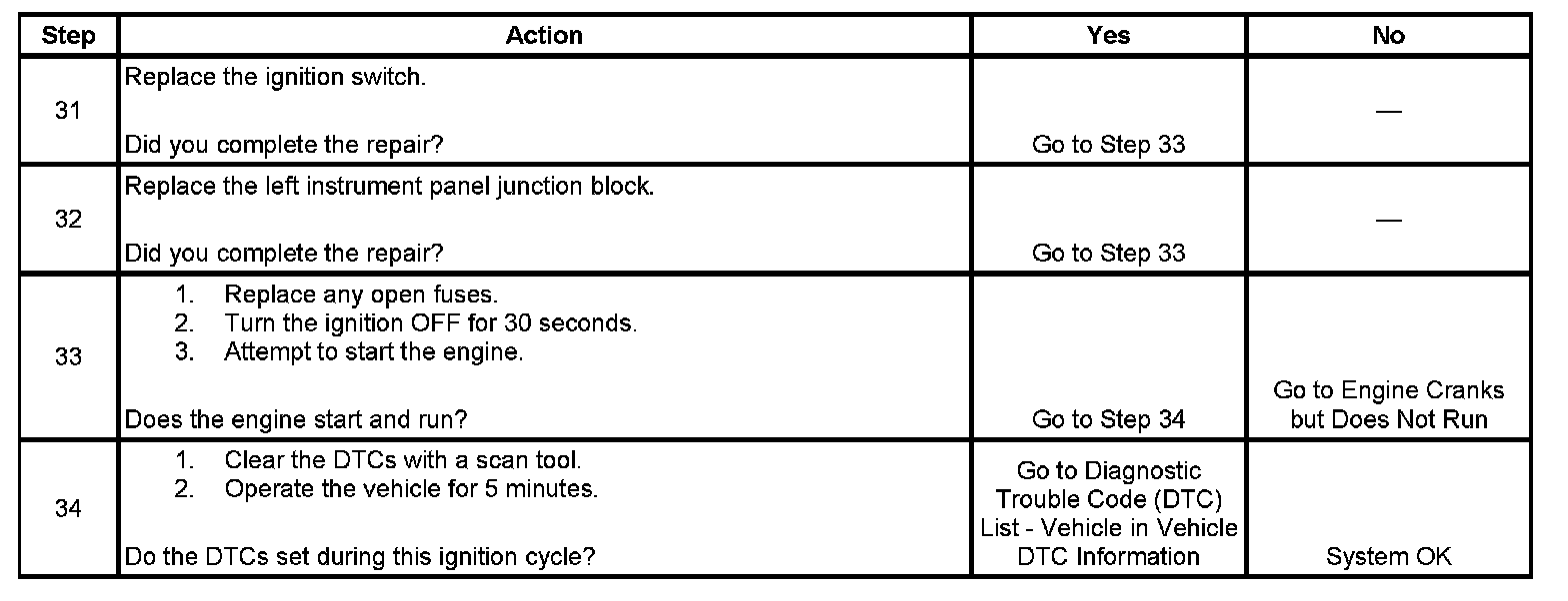 If the ignition relay fails to close, the engine will crank, but will not run. The class 2 communications will be available with the use of a scan tool.