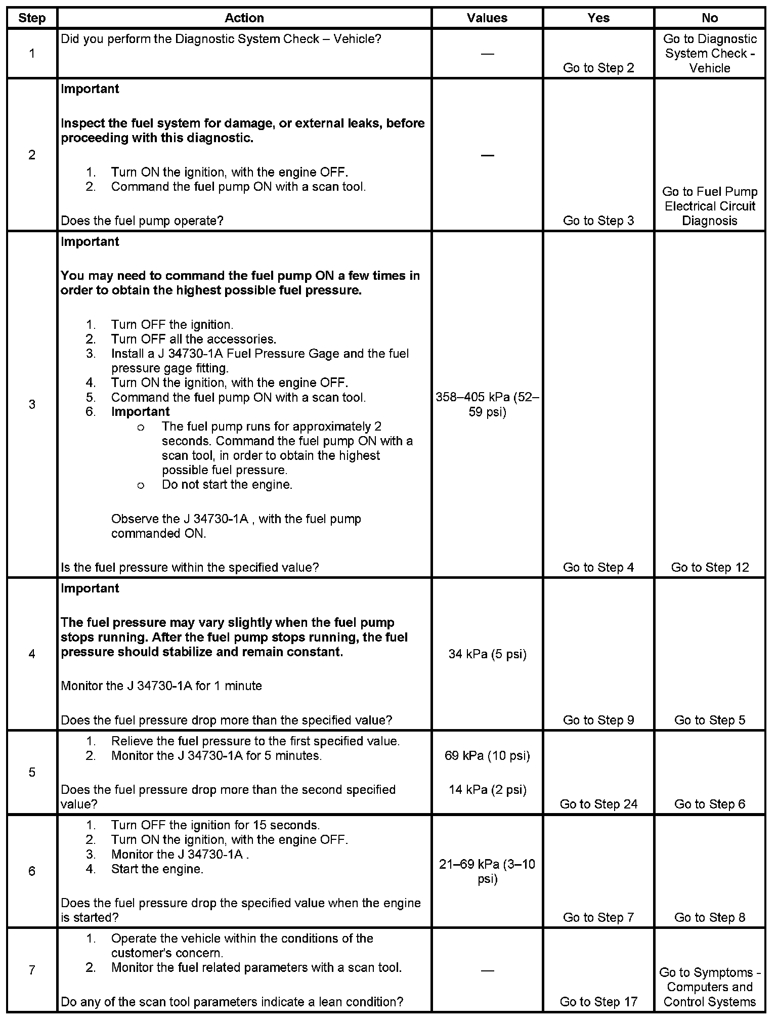 18. This step verifies that a circuit condition is not the cause of a fuel pressure concern. Inspect all fuel pump electrical circuits thoroughly.