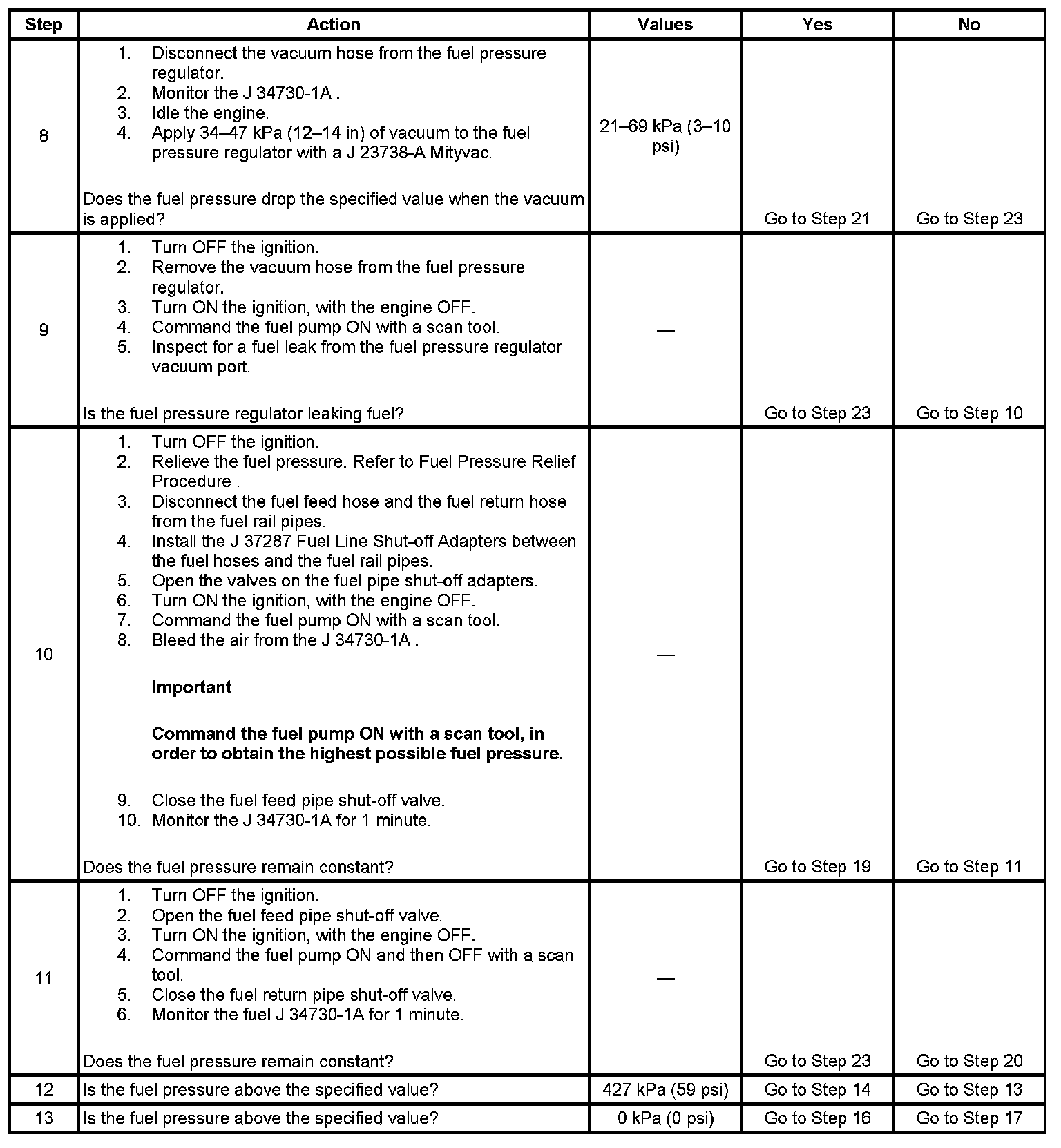 11. This step tests for a leaking fuel injector, or fuel pressure regulator. If the fuel pressure remains constant during this test, the fuel injectors are not leaking fuel.