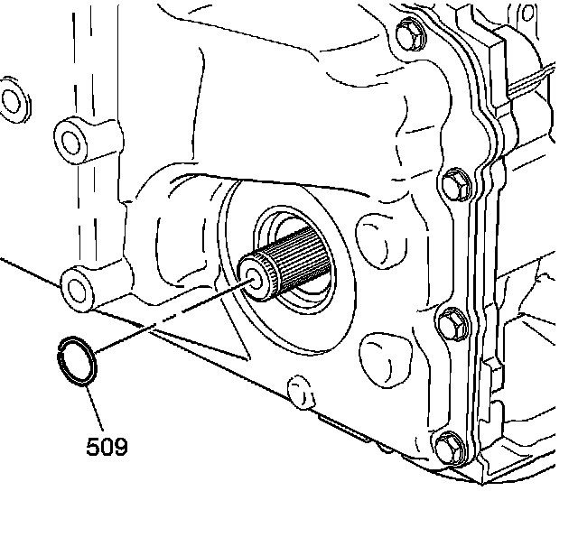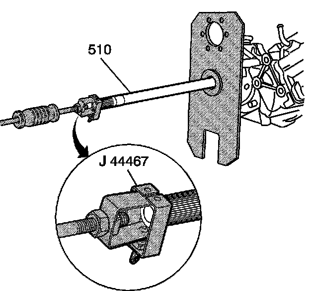 15. Attach the J 6125-1B to J 44467. Install the J 44467 into the snap ring groove on the output shaft (510).