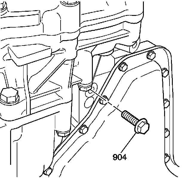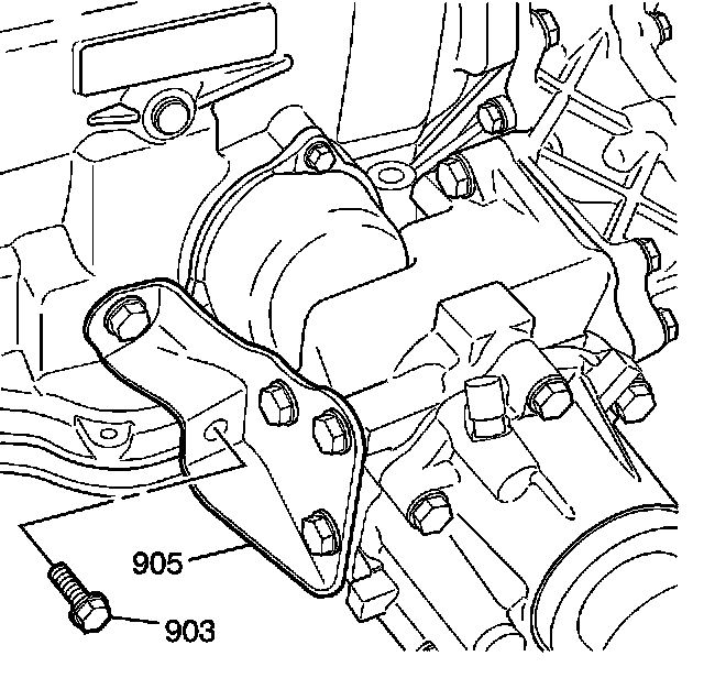 5. Remove the transfer case side brace bolts (903). Remove the side brace (905).