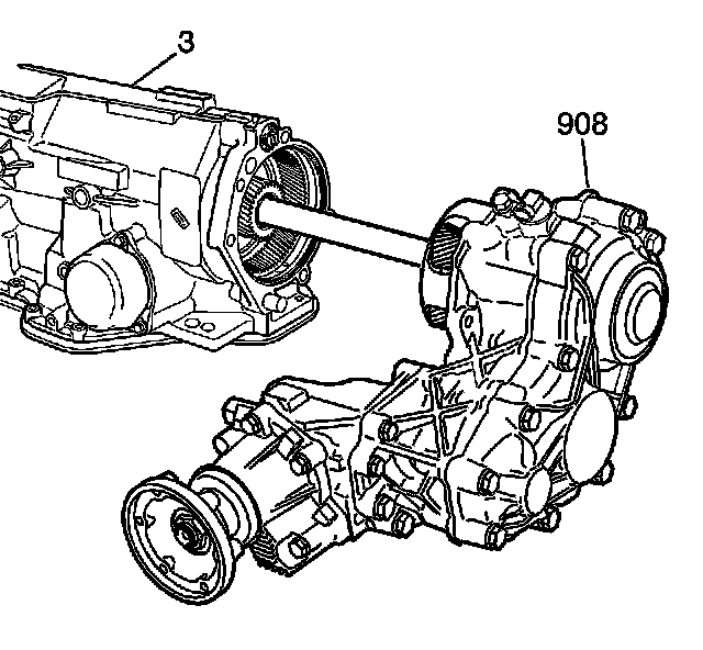 6. Remove the transfer case to case bolts (907, 909, 910).