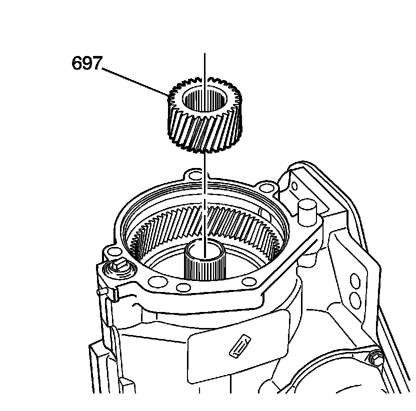 19. Remove the parking gear (696) and the parking gear thrust bearing (695).