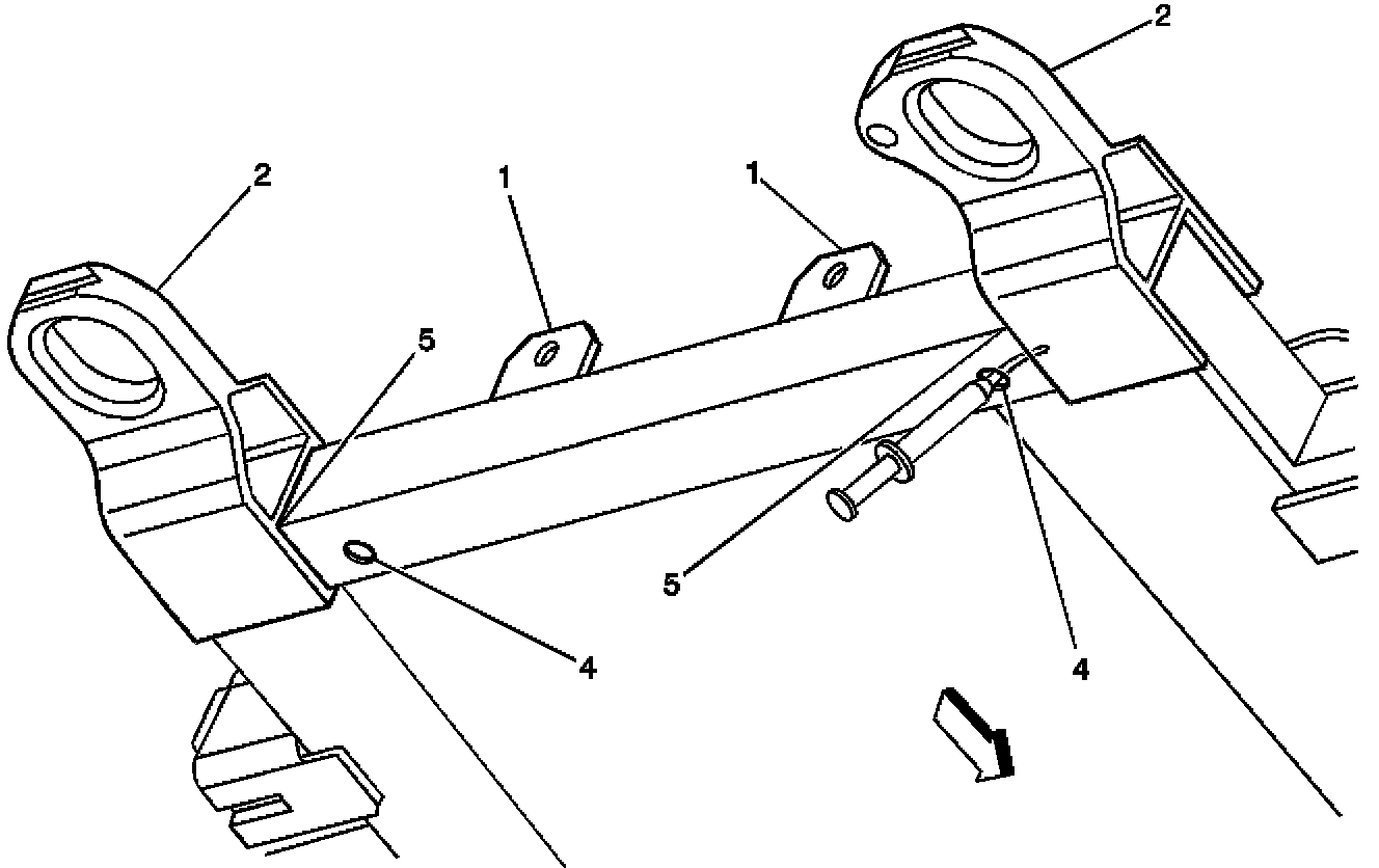 Locate the two holes (4) in the lower surface of the rear crossmember.