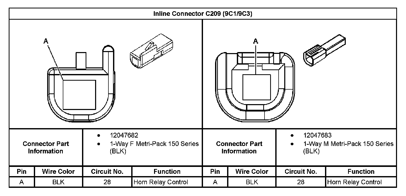 Inline Connector C209 (With RPO Code 9C1/9C3):