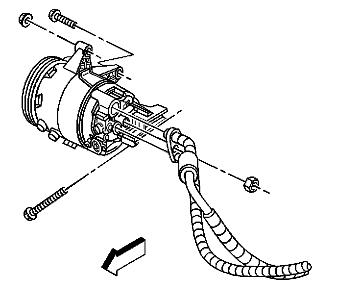 2. Position the A/C compressor on to the rear A/C compressor mounting bolt and front A/C compressor stud.