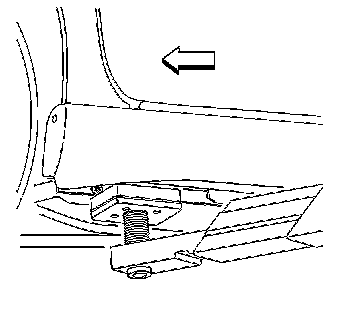 When lifting the vehicle with a frame-contact lift, place the front lift pads at the front pinchweld flanges.