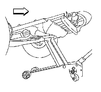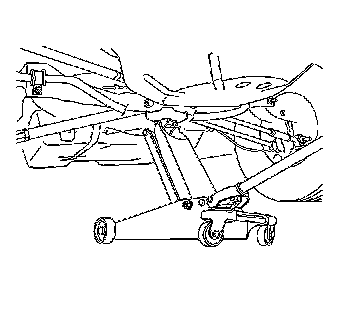 Lift the rear of the vehicle by placing the floor jack lift pad at the center of the rear suspension.