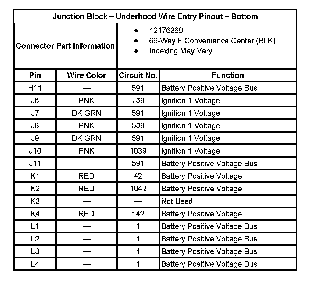 Junction Block - Underhood Wire Entry Pinout - Bottom Part 1: