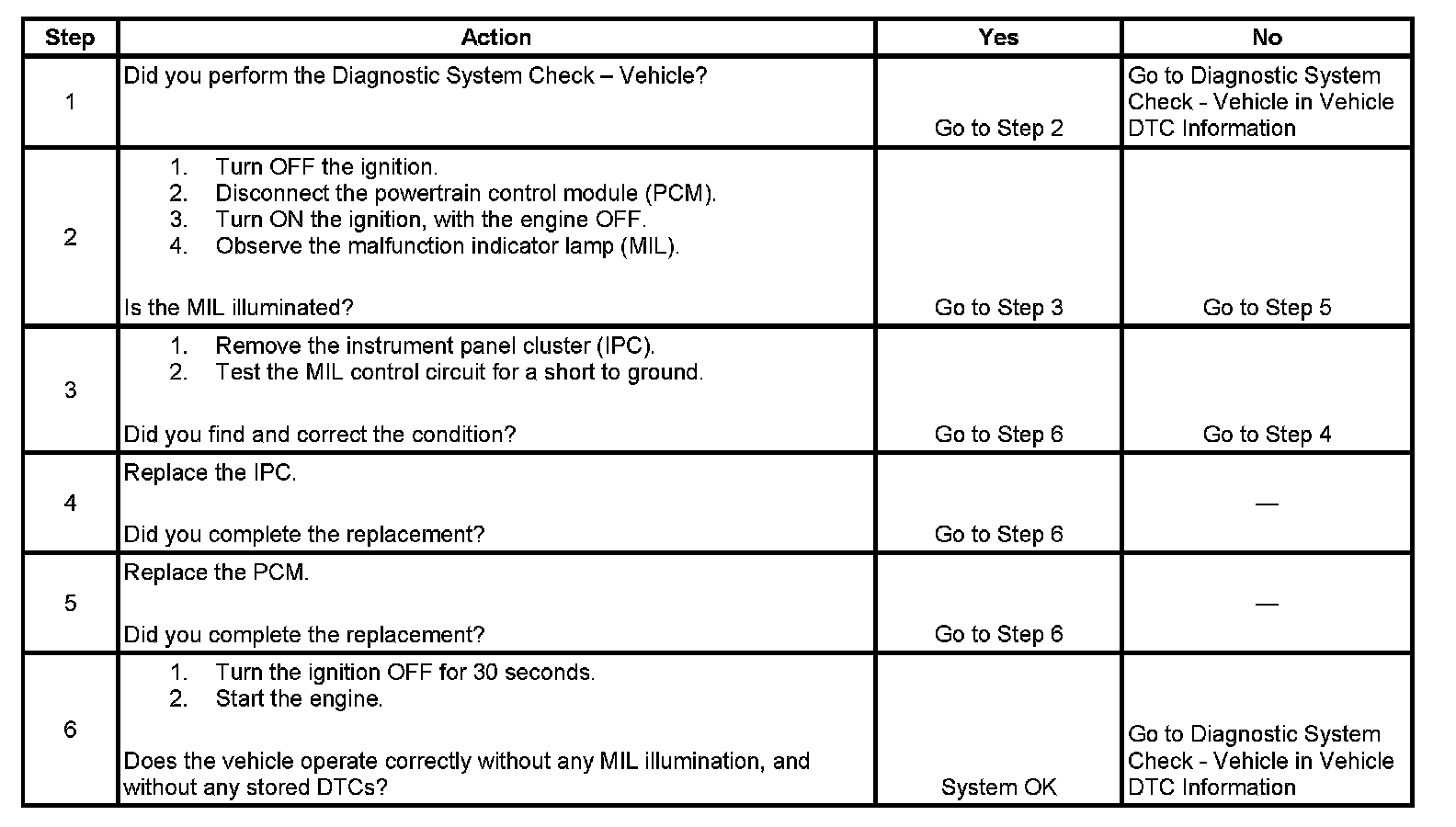 2. This step determines if the condition is with the MIL control circuit or the PCM.