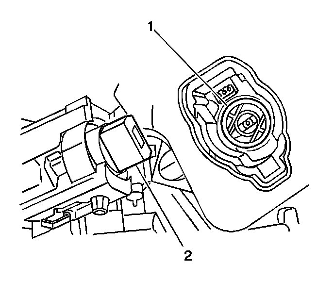 5. Turn the key to the ON/RUN position. Install the ignition lock cylinder into the ignition switch. If you turned the key slightly while removing the lock cylinder, you may have to align the white colored ignition switch rotor (1) with the lock cylinder (2). You can rotate the ignition switch rotor (1) with your finger.