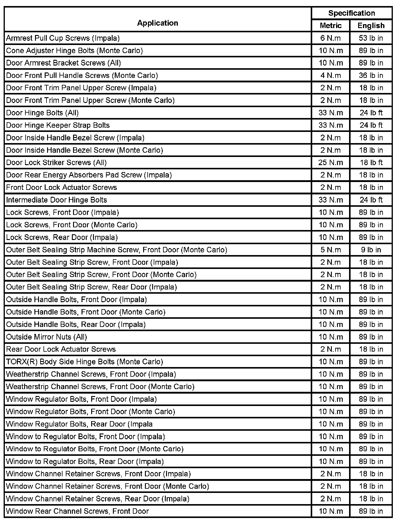 Fastener Tightening Specifications